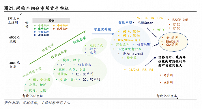 而在高价格段市场,除与小牛定位相似,同样主打智能牌的九号电动车正与它争抢地盘外,曾经靠平价打天下的传统厂商们也大举投入研发,发展高端产品。