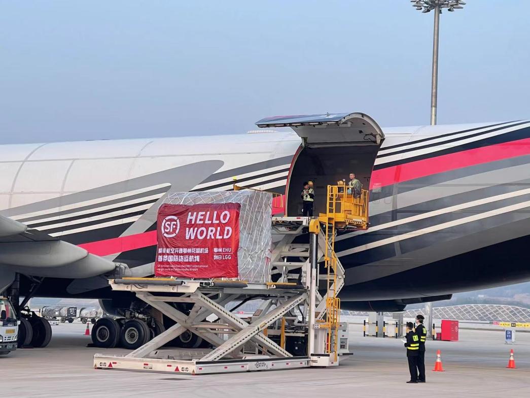 鄂州花湖机场首条国际货运航线开通。人民网记者 周倩文摄