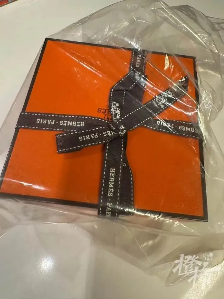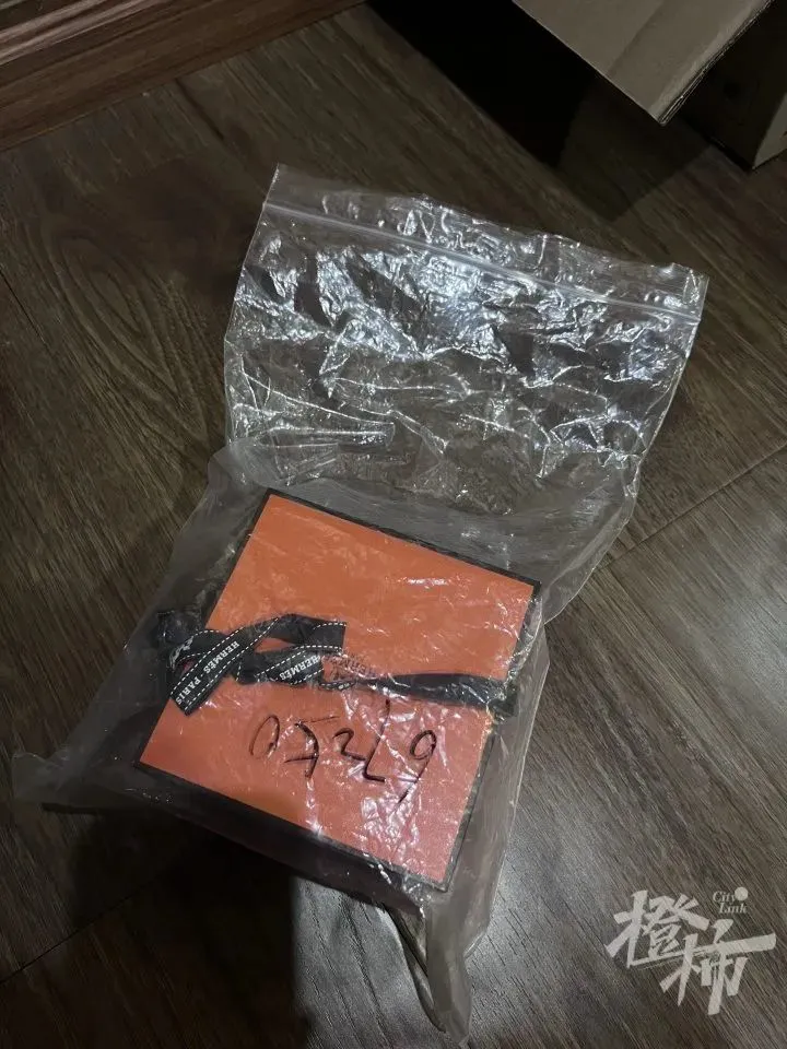 徐小姐把收到的礼物拍照发给寄件的朋友。朋友见到照片后说,爱马仕礼盒的包装袋不对,她寄出的时候是不可拆的透明热熔封袋,但徐小姐收到的是密实拉链袋。
