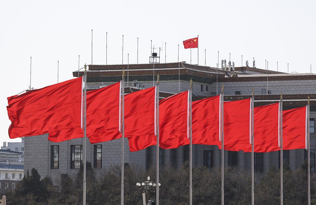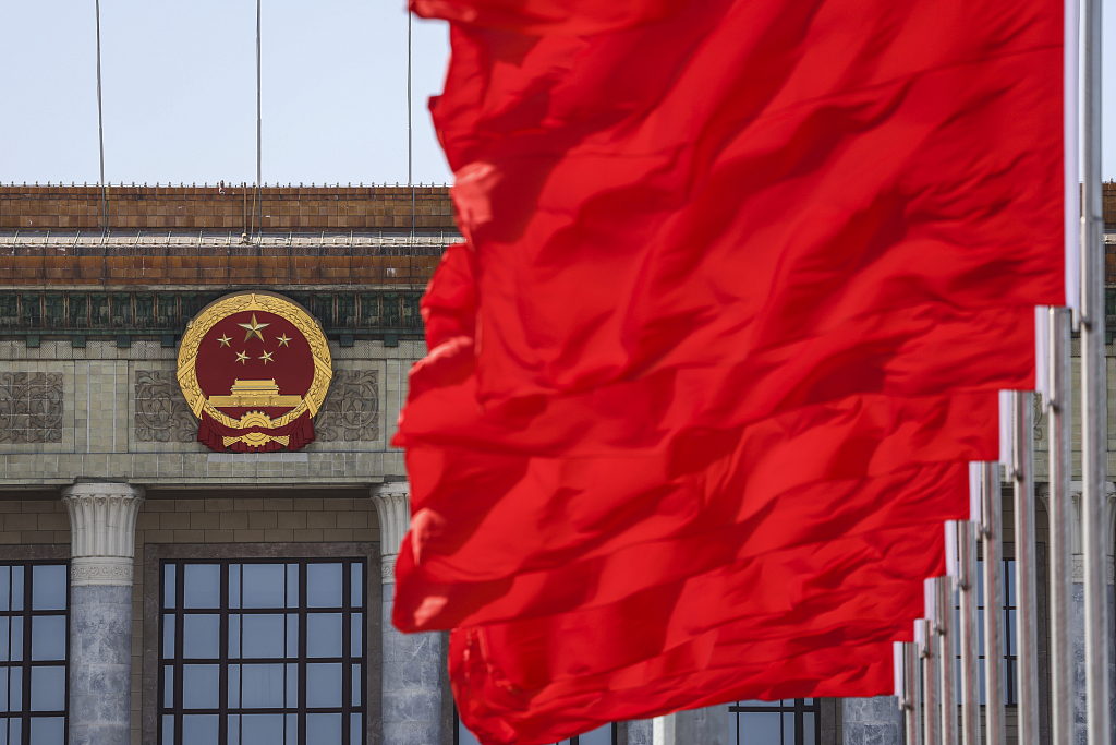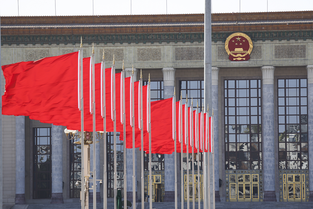 2月29日,北京人民大会堂前的红旗在风中飞舞。全国政协十四届二次会议和十四届全国人大二次会议将分别于2024年3月4日和3月5日在北京开幕。目前已有3000多名中外记者报名采访全国两会,其中境内记者2000多名,港澳台记者和外国记者1000多名,中外记者报名数量较近几年有明显增长。图源:视觉中国