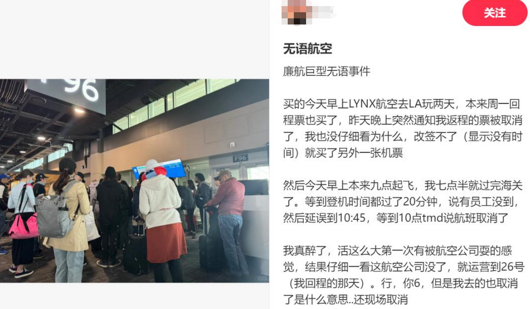 据南方都市报,针对该消息,2月27日,去哪儿网回应有网友表示,在去哪儿平台上预订Lynx Air机票且出行日期在当地时间2月26日(含当日)后的乘客,可申请办理全额退款,去哪儿网将为用户提前垫退。