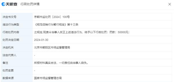 据中国网报道,天眼查APP显示,近期,百合佳缘网络集团股份有限公司因违反促销行为规定,被北京市朝阳区市场监督管理局罚款5万元。