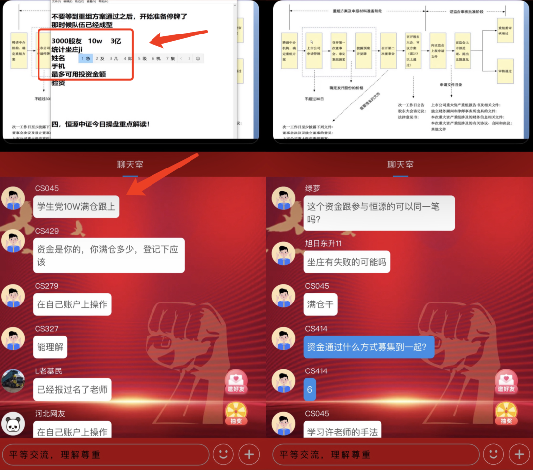 “几天之后群里老师提出要坐庄,要求群成员向助理报备可参与的资金,并多次强调该股票一旦重组成功便可实现至少10连板,超过100%的涨幅,但要求把资金打入他们的账户进行统一操作。虽然之前尝到了甜头,但我对此还是半信半疑,只拿出一小部分资金参与坐庄,最后的结果可想而知,打进去的钱血本无归。”谈及此事时该投资者苦不堪言。