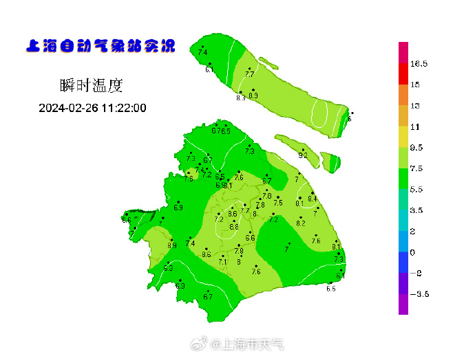 虽然今天申城阳光露脸,但依然较为寒冷,预计今天的最高气温在8℃附近。市区徐家汇站最低气温2.1℃,郊区大多在0~3℃之间,其中金山最低,仅零下0.1℃。