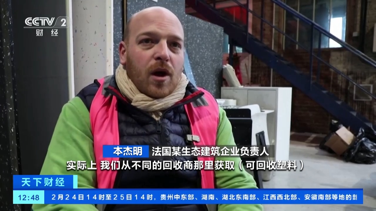 法国某生态建筑企业负责人 本杰明:我们从不同的回收商那里获取(可回收塑料),与超50家回收商合作,他们负责收集垃圾,并对(回收物)进行分类。