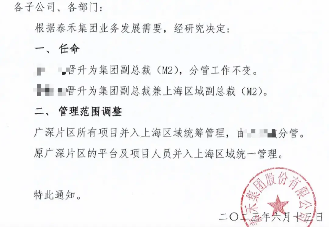 在这之前,泰禾还把广深片区所有项目及平台、人员并入上海区域统筹管理。
