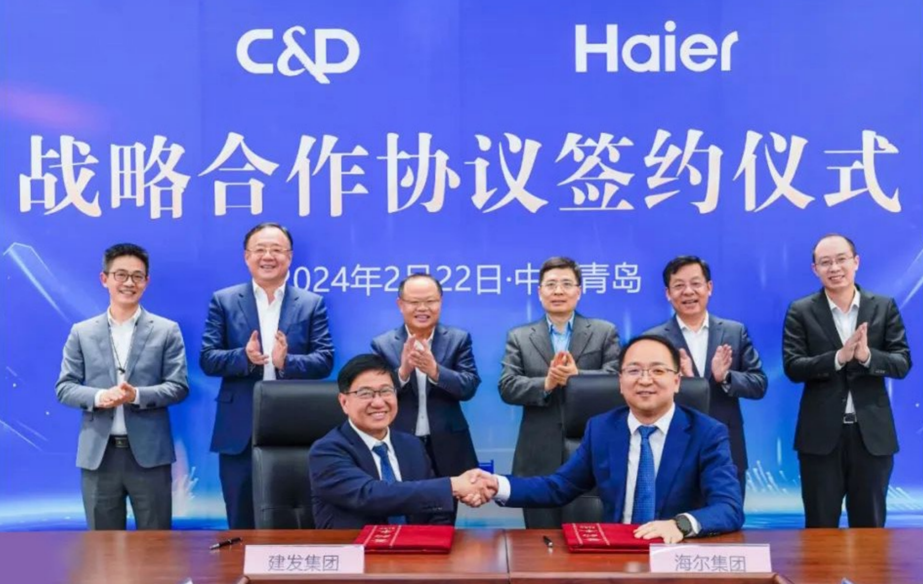 2月22日,厦门建发集团有限公司(以下简称“建发集团”)与海尔集团公司(以下简称“海尔集团”)在青岛市海尔生态体验中心签署战略合作框架协议。海尔集团董事局主席、首席执行官周云杰,海尔集团高级副总裁、海尔智家董事长兼总裁李华刚,建发集团党委书记、董事长黄文洲,建发集团党委副书记、总经理郑永达出席签约仪式。海尔集团政企事务战略合作部总经理、海尔智家副总裁、中国区总经理徐萌,建发股份副总经理、消费品集团总经理王志兵代表双方签约。红星美凯龙家居集团总裁施姚峰、执行总裁朱家桂出席此次活动。