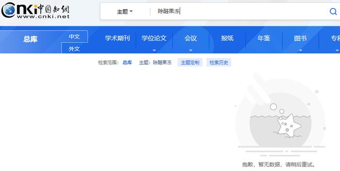 本刊记者在知网平台和图书馆联盟平台搜索“雪松除醛因子”“雪松提取物除醛”“除醛果冻”字眼,均未找到任何相关文献。