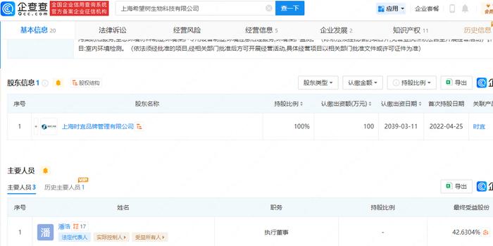 上海时宜品牌管理有限公司、上海希望树生物科技有限公司这两家公司的法定代表人均为潘浩。根据天下网商《80后学霸卖除醛产品,年营收10亿,拿下双类目第一》的采访,潘浩拥有10年以上的快消品运营经验,在创立希望树之前曾在宝洁任职,又先后担任过百事、联合利华和美素佳儿的高管。希望树的母公司“时宜”,是潘浩在2019年创立的,谐音“十亿”。
