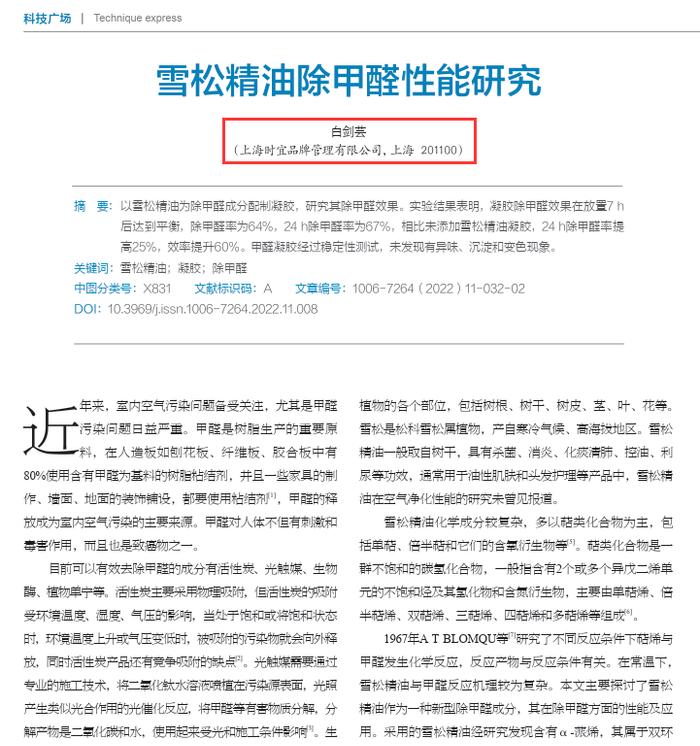 值得注意的是,该论文于2022年发表于《日用化学品科学》杂志上,而希望树第一代除醛果冻在2020年即推出。