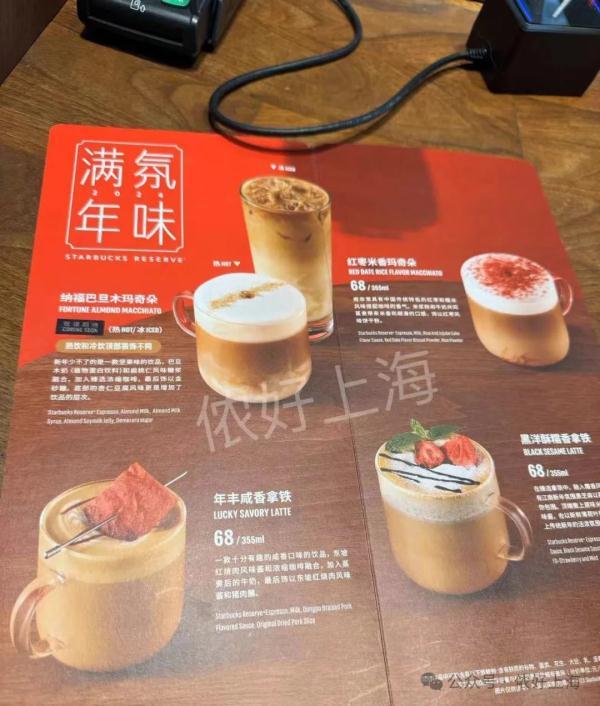 在星巴克新年菜单上,除了有传说中的“红烧肉拿铁”,另一款同样售价68元的“黑洋酥拿铁”也是意外地受到大家欢迎。