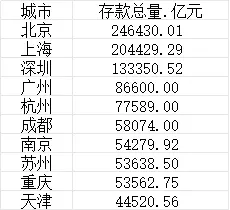 城市“金融机构各项存款余额”,又叫“资金总量”,反映了一个城市对资金的吸附能力。