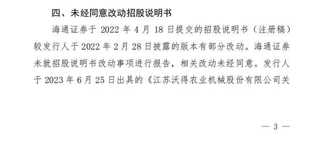 同样在2023年11月,针对在保荐沃得农机IPO过程中未勤勉尽责履行相关职责,证监会对海通证券以及陈城、景炀出具警示函。