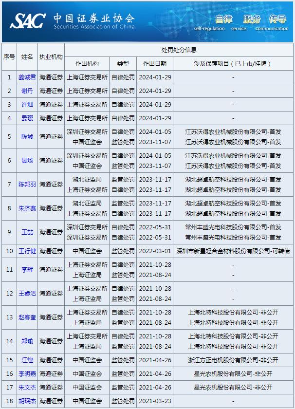 红星资本局注意到,2024年的第一个月,海通证券及相关人员就因投行业务违规两次遭监管处罚,不仅公司被沪深交易所点名,还有4名保代被通报批评,3名相关负责人被警示。