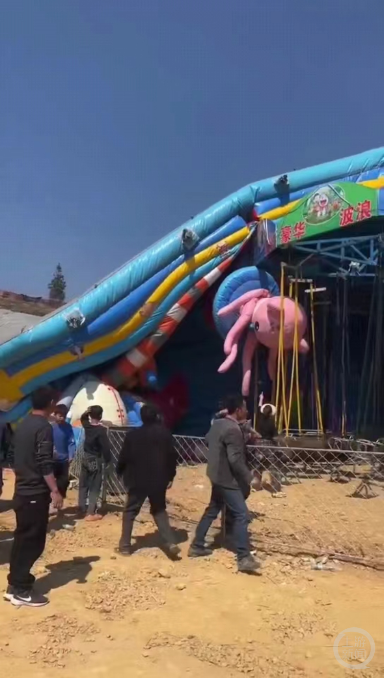 2月21日晚,德峨镇政府工作人员在接受其他媒体采访时确认发生了事故:事发时间是20日下午2时左右,当天风较大,该充气城堡被风吹翻,伤者均已被送往医院。