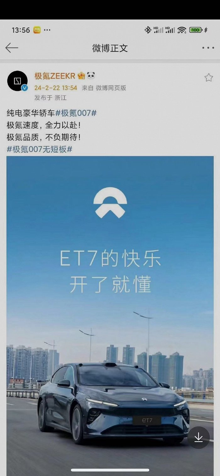 2月22日午间,极氪汽车意外地在社交媒体上使用了竞争对手蔚来汽车的宣传图,为其纯电豪华轿车极氪007做宣传,引发广泛讨论。