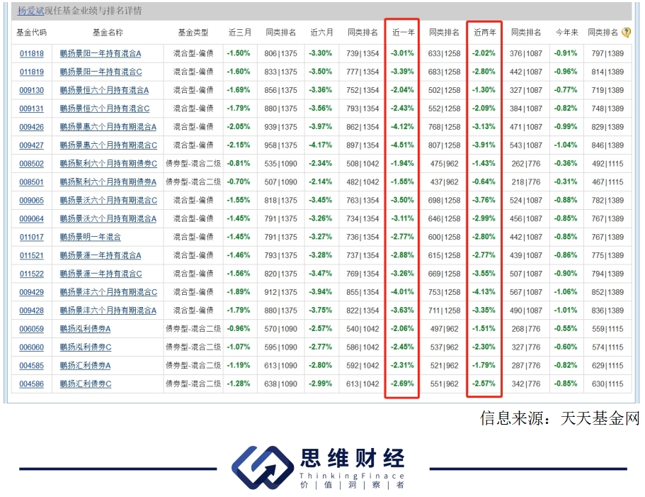 杨爱斌管理的产品,截至2月17日,不仅在年内全面飘绿,拉长时间线来看,近三月、近六月、近一年、近两年的各个阶段皆未取得正收益。