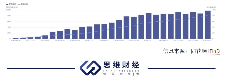 同花顺iFinD显示,鹏扬基金管理规模显著增长,成立至今七年时间,总管理规模已经逼近千亿元,截至2023年末,规模达到983.53亿元。