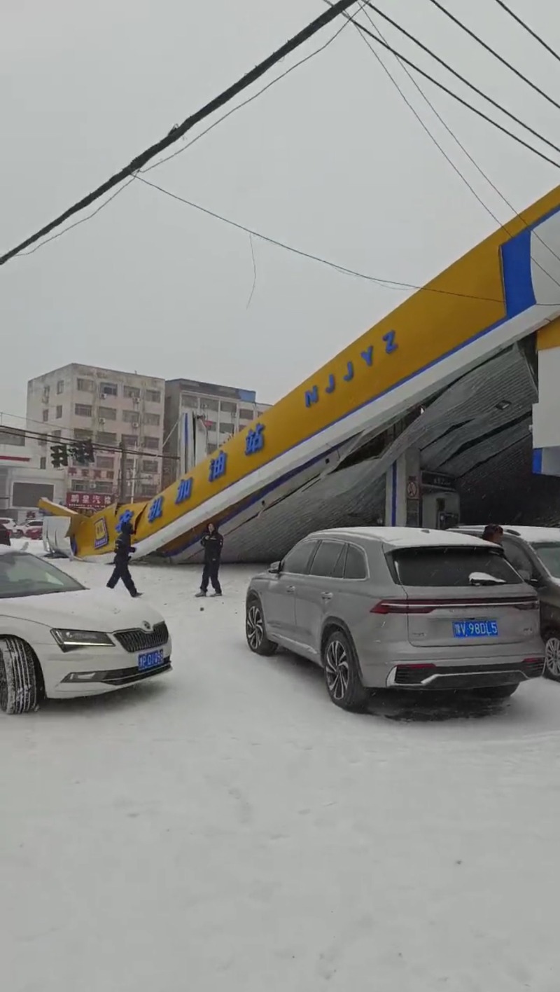 记者随即询问是否是大雪导致加油站垮塌,她表示不方便回应。在记者的追问下,她又表示是天气原因导致,目前没有造成人员伤亡。