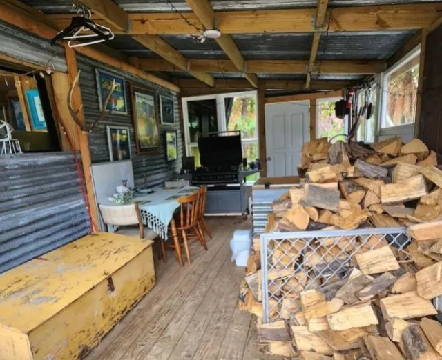 鉴于西海岸的湿冷气候,民宿准备了大量木柴,这些木柴都堆放在民宿木屋一侧的空间里。而这些木柴,可能是民宿燃起大火的重要原因之一。