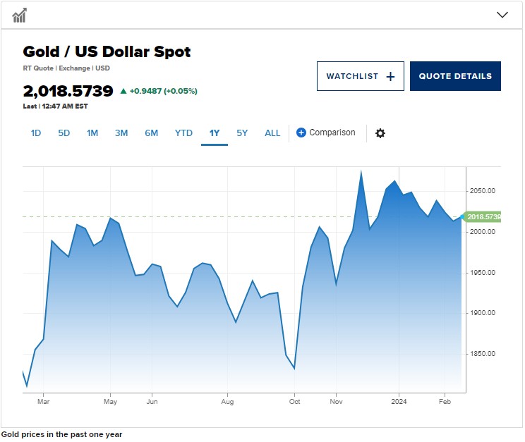 除了这三个潜在触发因素外,花旗维持其黄金基准预测,即2024年下半年为每盎司2150美元,第一季度金价平均略高于2000美元。多希补充称,新纪录可能在2024年底达��。