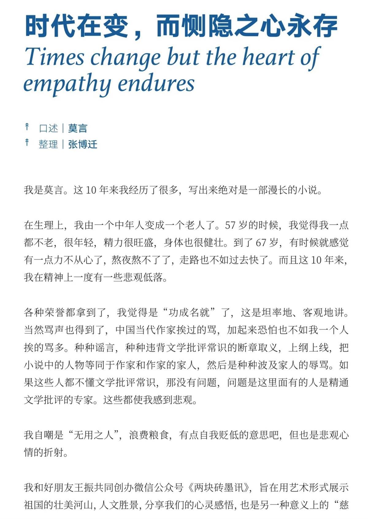 莫言写道“即便有人讽刺挖苦,我们也乐此不疲”