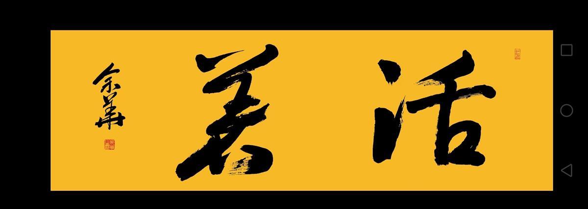 “活着”这两个毛笔字,还是余华的毛笔字首秀。著名作家余华在视频中说,他其实从来没有写过字,过去别人让他写,他都是写硬笔。这次“去莫言和王振办的‘两块砖书屋’,在王振老师的指导下,写了两个多小时,最后终于把这个字写出来了。”为了写好这两个字,余华还在王振的指导下,下载了书法类APP一点一点地学,最后“活”字学的是董其昌的字体,“着”字学的是文徵明的字体。