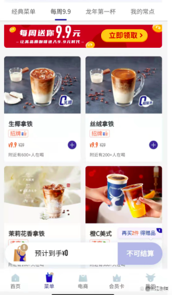 2月18日消息,春节假期后的首个工作日,有不少网友反映,瑞幸咖啡每周“9.9元喝一杯”优惠券活动“缩水”,不再是全场饮品可以使用9.9元优惠券,只剩8款指定饮品参与活动,引发网络热议。