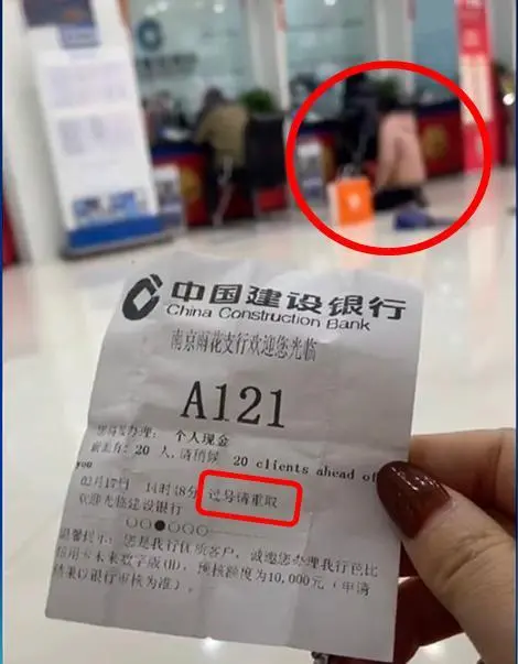 2月18日,华商报大风新闻记者从建行南京雨花支行证实,此事发生在该支行,银行已了解情况,目前正调取监控视频。