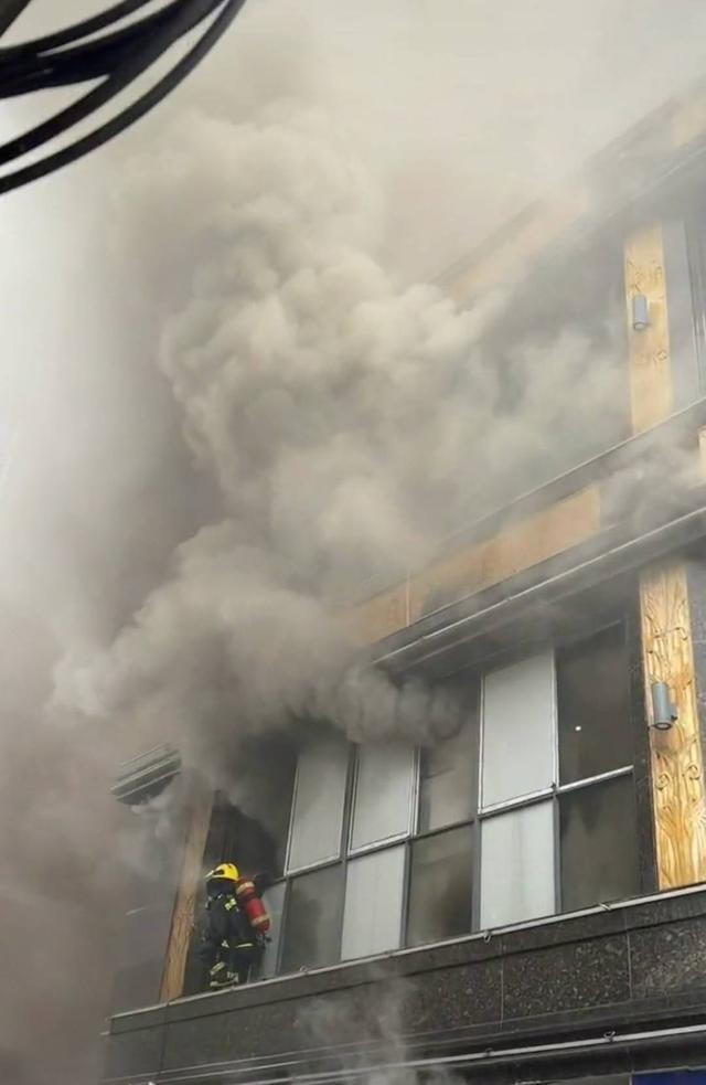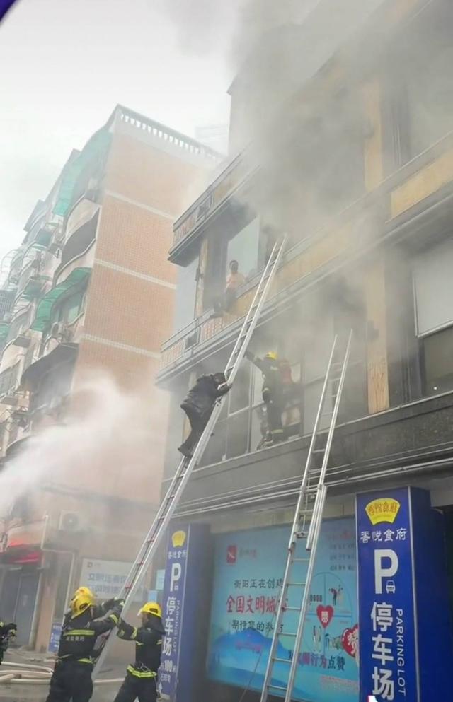 据网友发布的视频,饭店的二楼三楼发出大量浓烟,消防员正在现场灭火,有市民坐在三楼窗户外沿等待救援,消防员利用梯子救援被困市民,多位市民被救出。