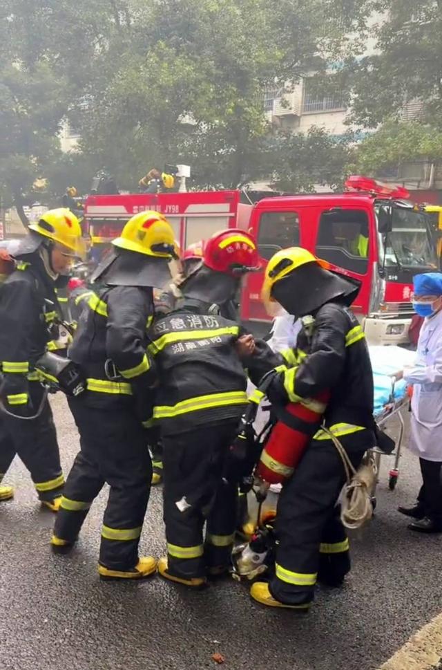 另一则现场视频显示,一位消防员疑似受伤,队员帮他卸下装备后,把他扶上了急救担架。