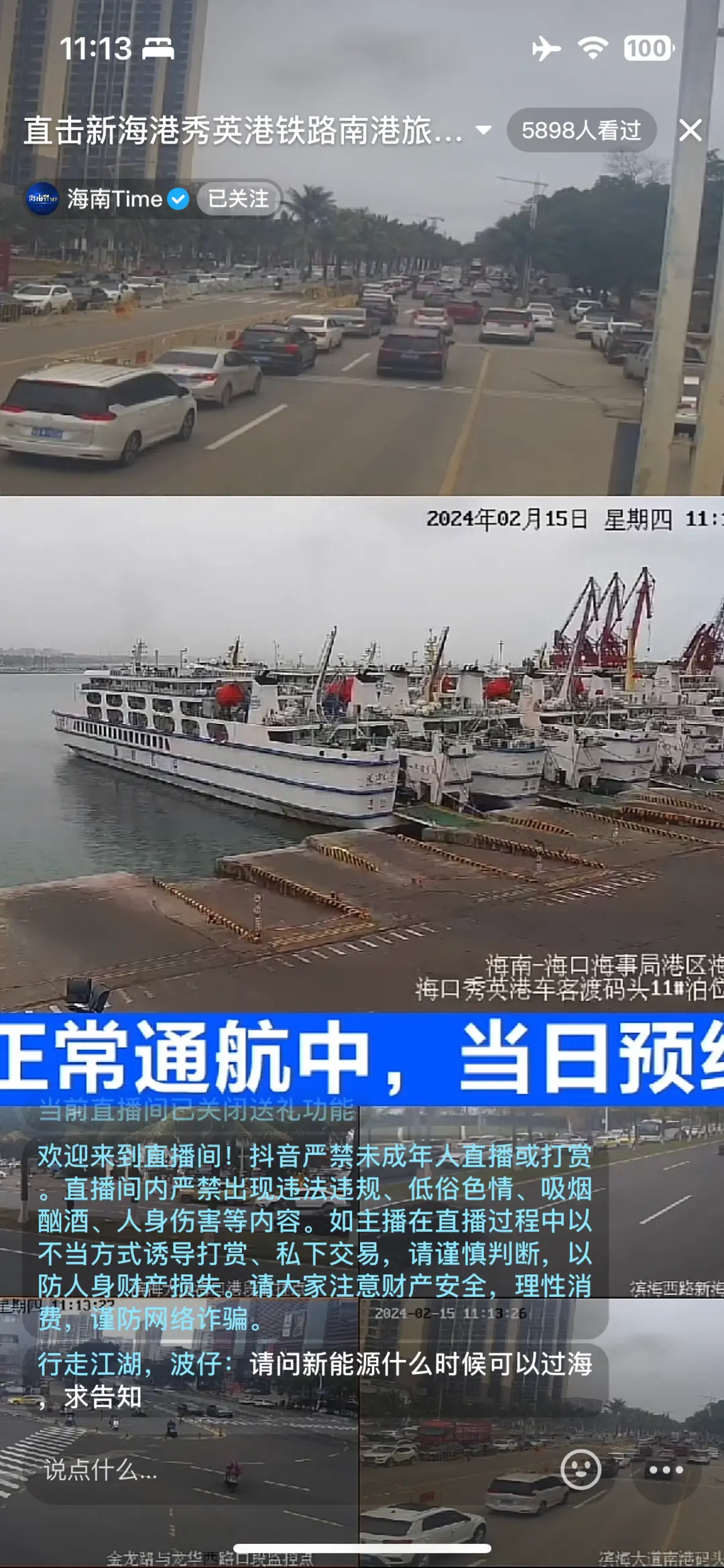 与此同时,海南3个港口的新能源汽车过海需求旺盛。2月14日,许多新能源车主在网上反映称,其新能源车已经等了6天,出岛过海船票“一票难求”。