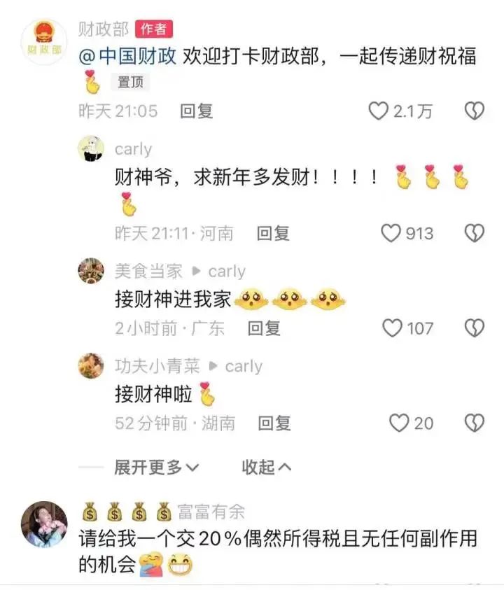 财政部官方账号就发了一个视频送祝福