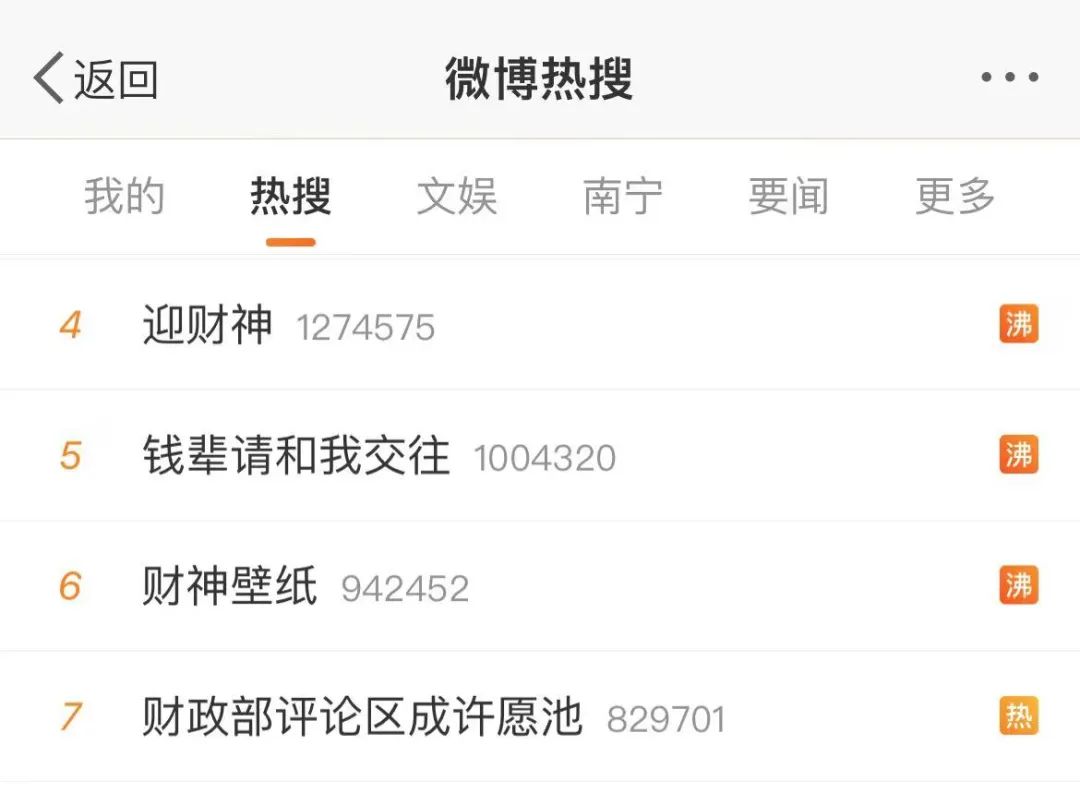 将多条与“财神”相关的词条送上热搜!