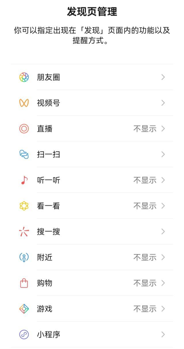 打开发现页设置,也无法再添加“摇一摇”功能。可见这个功能已经被微信彻底抛弃了。