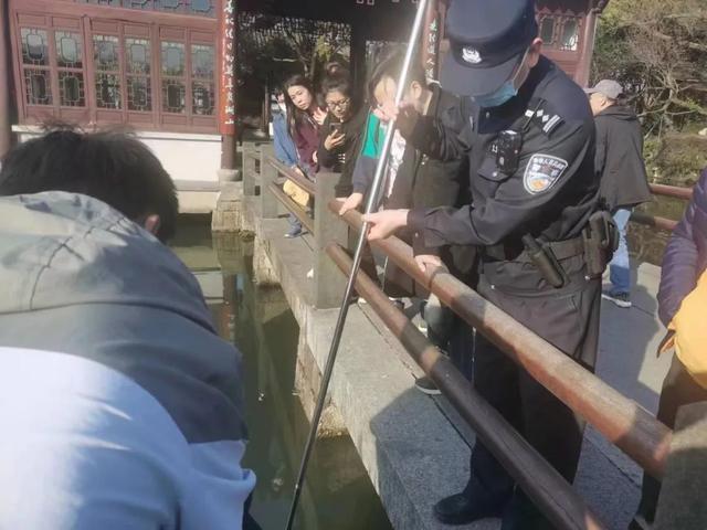 刘西建忙婉言谢绝。原来,这位游客掉了只苹果手机,正好碰到刘西建,游客惊讶于民警这根“打捞神器”,“本来是我自己不小心,我以为这种小事警察没时间管的。没想到你们这么费心费力。”