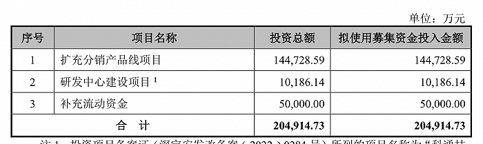 补流!经营活动产生的现金流量净额长期为负值这一次,科通技术计划募资20.49亿元,投入到“扩充分销产品线项目”(14.47亿元)、“研发中心建设项目”(1.02亿元)和补流(5亿元)。