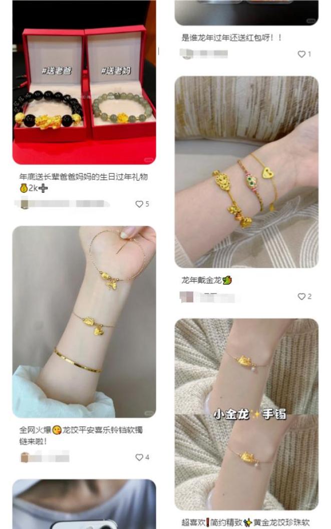 除了黄金首饰,龙年金钞、金条、金币等多种形态的龙元素黄金产品也备受消费者喜爱。一位深圳水贝黄金批发市场的店家表示,今年1月初其店铺拿到外部IP授权,在网络平台上新了一款龙年吉祥物黄金手机贴,单价在百元以内,一上架就被抢购一空,现在预售订单已经排到了年后。
