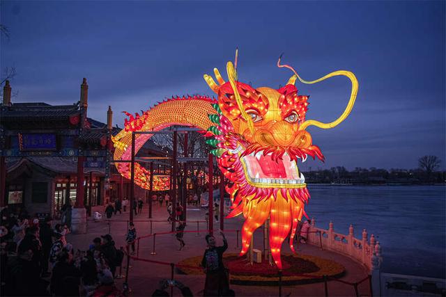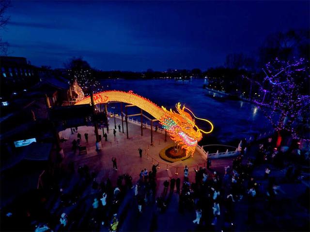 2月8日晚,巨型龙灯“蛟龙出海”在北京什刹海荷花市场试亮相,引来无数市民游客驻足打卡。从2月9日除夕开始,该龙灯将正式“营业”,从每晚6点亮至午夜12点。