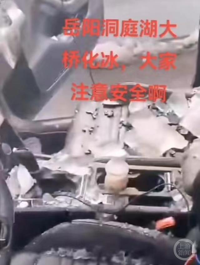 7日,湖南岳阳多位车主发布视频称,在经过岳阳洞庭湖大桥时,遇到桥上的铁索掉下冰柱,多辆车被砸受损,此事引发关注。