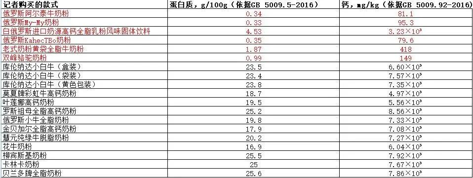 红星新闻从拼多多“千羽城食品”购买的“白俄罗斯进口高钙全脂乳粉风味固体饮料”、从淘宝“严轩俄罗斯产品馆”购买的“老式奶粉黄袋全脂牛奶粉”虽然检测出牛DNA,但经检测其蛋白质含量很低,远达不到调制乳粉的标准,不能算作“牛奶粉”。其中,“老式奶粉黄袋全脂牛奶粉”包装上没有中文标签。