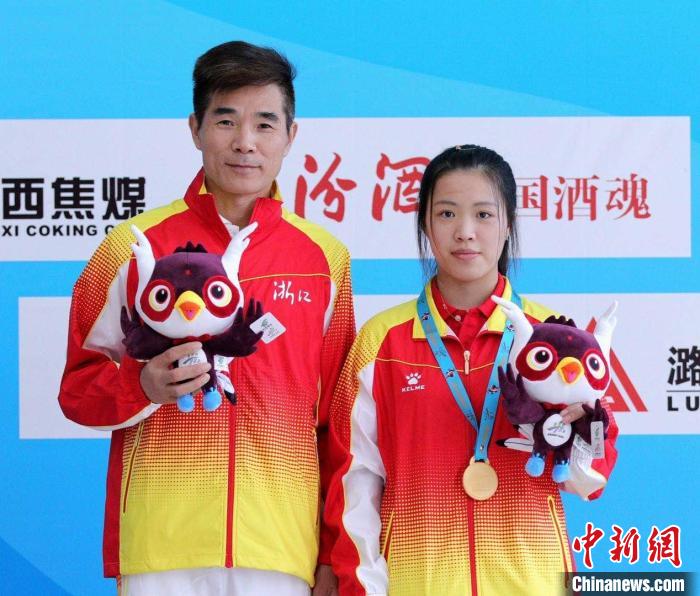 图为杨倩(右)和启蒙教练虞利华。