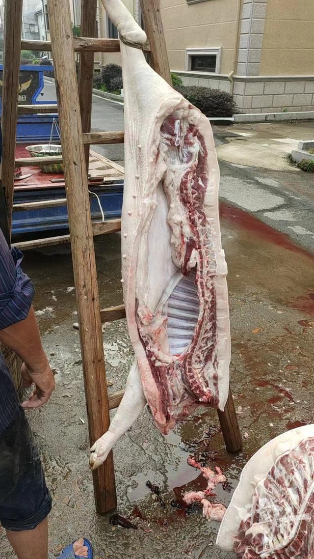 海芳说她把年猪肉拿回娘家,老爸一合计,说还是杀年猪划算,明年也要拼年猪,到时候找四户人家,拼一头300斤的年猪。“这头年猪小,整猪每斤10块4毛5,如果超过280斤的年猪,整猪每斤9块5也买得到,还能便宜几百块钱。”