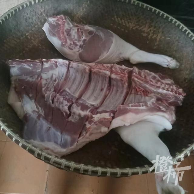 华芳分了70斤年猪肉,然后妈妈家留一点,回到上虞,公司同事分一点,小区邻居分一点,好朋友分一点,最后剩下两块带排骨的年猪肉,十斤左右。“这样刚刚好,肉太多也吃不动,亲戚朋友都能尝到年猪味道,想想就开心。”