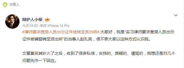 2月2日晚,当事人@辩护人小柴 发文回应网络热议问题。