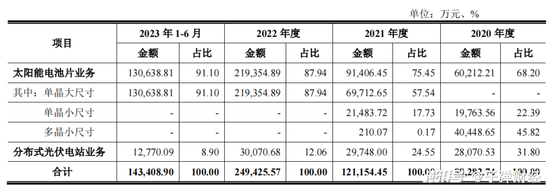 除低价转让股权外,现有产品技术落后也是鸿禧能源需要面临的困境之一。从公司收入来看,截至2023年上半年,鸿禧能源91.10%的收入来源于太阳能电池片业务。