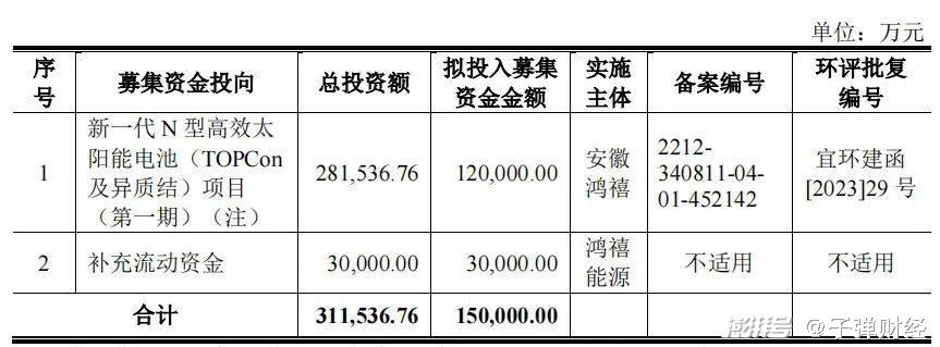 即便如此,鸿禧能源也未放弃扩产TOPCon电池的想法。在招股书中,鸿禧能源计划投资28.15亿元建设新一代N型电池项目。