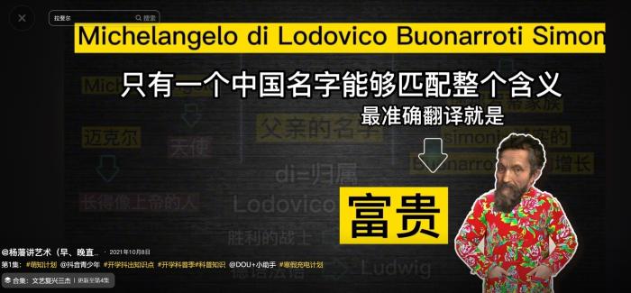 杨藩质疑董董讲解米开朗琪罗时抄袭自己的视频文案。 截图自短视频平台。
