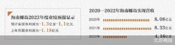 事实上,从海南椰岛近三年业绩来看,海南椰岛营收近乎腰斩的同时,净利润亏损也在逐渐扩大。2020—2022年,海南椰岛实现营收分别为8.08亿元、8.33亿元、4.16亿元,同比增长分别为29.18%、3.16%、-50.03%;实现净利润分别为2430.88万元、-6014.09万元、-1.18亿元。
