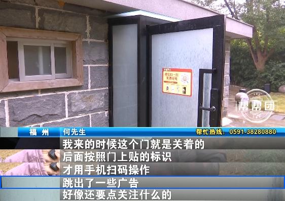 何先生说,他开车到鼓岭风景区登山古道入口时,肚子不舒服,于是找到了一处公共卫生间,却发现这个卫生间需扫码才能进。他前后花费了两三分钟的时间,十分难受,这也让他质疑,如果碰上不会使用手机的老人该怎么办?